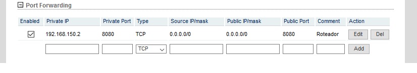Porém só uso ubiquiti na minha rede , seria na aba network , encaminhamento de porta , qual ip coloco? Pede tbm porta pública .... Aí já me perdi tudo ...