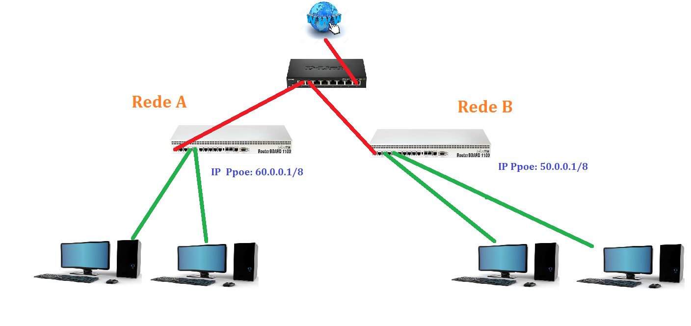 Olá, Alguém poderia me ajudar em qual tipo de configurações eu consigo interligar duas redes distintas. Pois eu queria consegui pingar em redes diferente ,por exemplo se eu estiver conectado na rede A, poder pingar na rede B