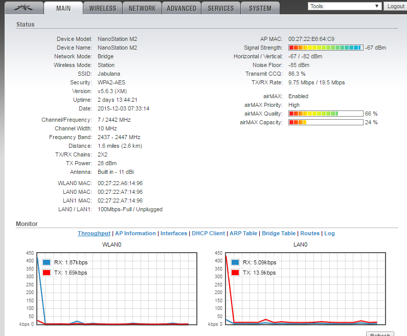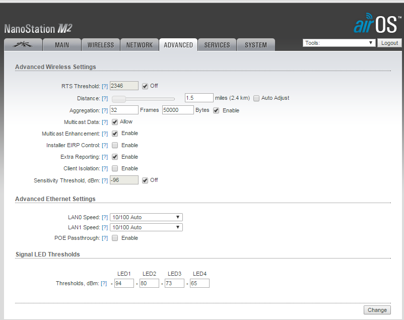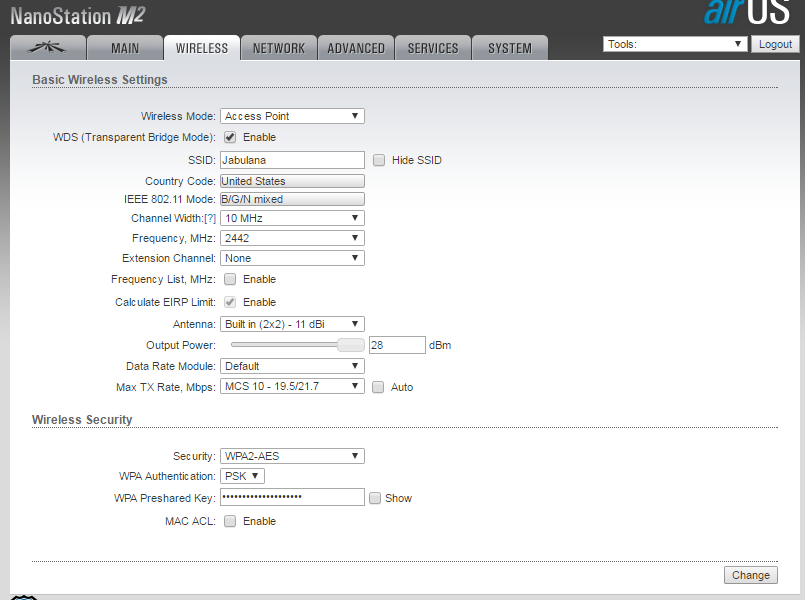 Falando em canais de verdade: pra passar alguma coisa descente aí tem que colocar a largura do canal em 20mhz ou 40mhz e depois fazer um Airview nas 2 pontas pra achar o canal menos poluído (2.4 é bem poluído).. Tua Nano tá no canal 7 que é o mais usado estatisticamente falando.