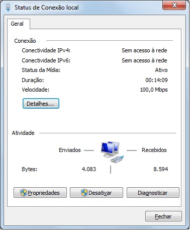 A velocidade no status de conexão indica 10Mbps, como posso alterar isso?