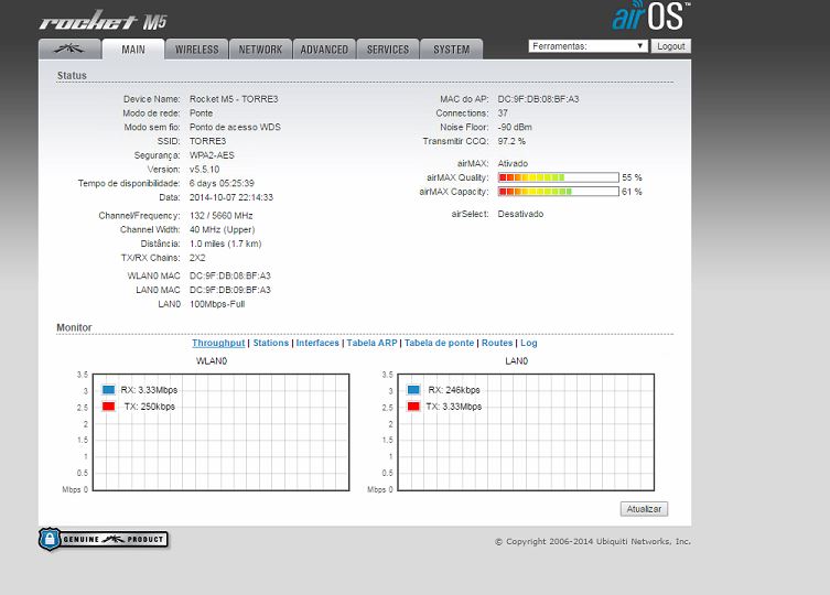 Up bom e down ruim ou vice versa é possivel problema de sinal... Exemplo: um cliente com sinal recebido bom tem down bom, mas se o sinal que é enviado é ruim o upload fica ruim devido a modulação do MCS que é feita baseada na intesidade do sinal... Teria que tirar um print da aba de conexões....