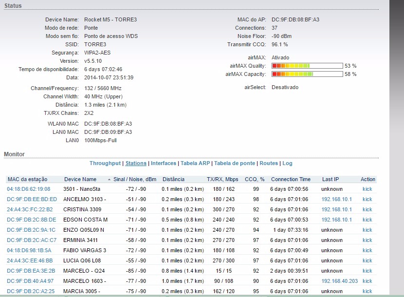 Outra amigo... 30Mbps x 37 clientes dá +~-~1 gbps... Se 5 clientes estiverem full a 30mbps já gargalou!!! Rocket não é pra isso ai nao... Dá no máximo 150Mbps ....