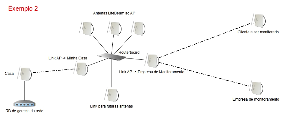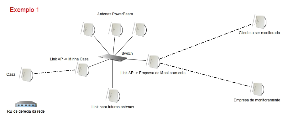 Vou montar um antena em um prédio no centro da cidade. Um prédio que da visada para a empresa de monitoramento e a empresa a ser monitorada, bem como visada para minha casa. Onde pretendo montar o CPD para monitoramento da rede.