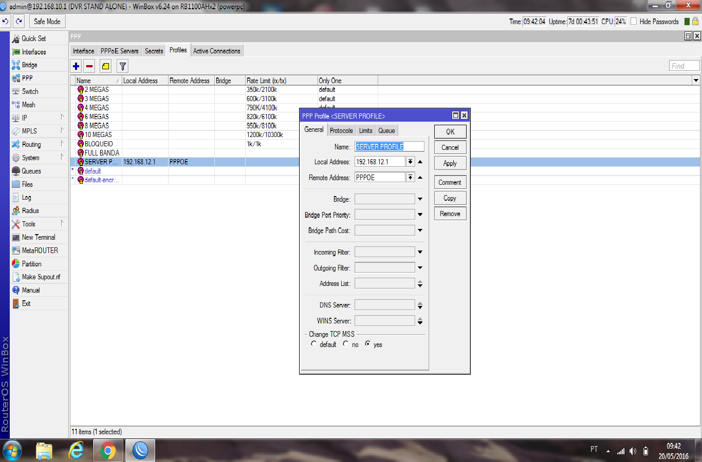 bom dia, envia umas fotos da configuração ppp e o profile.