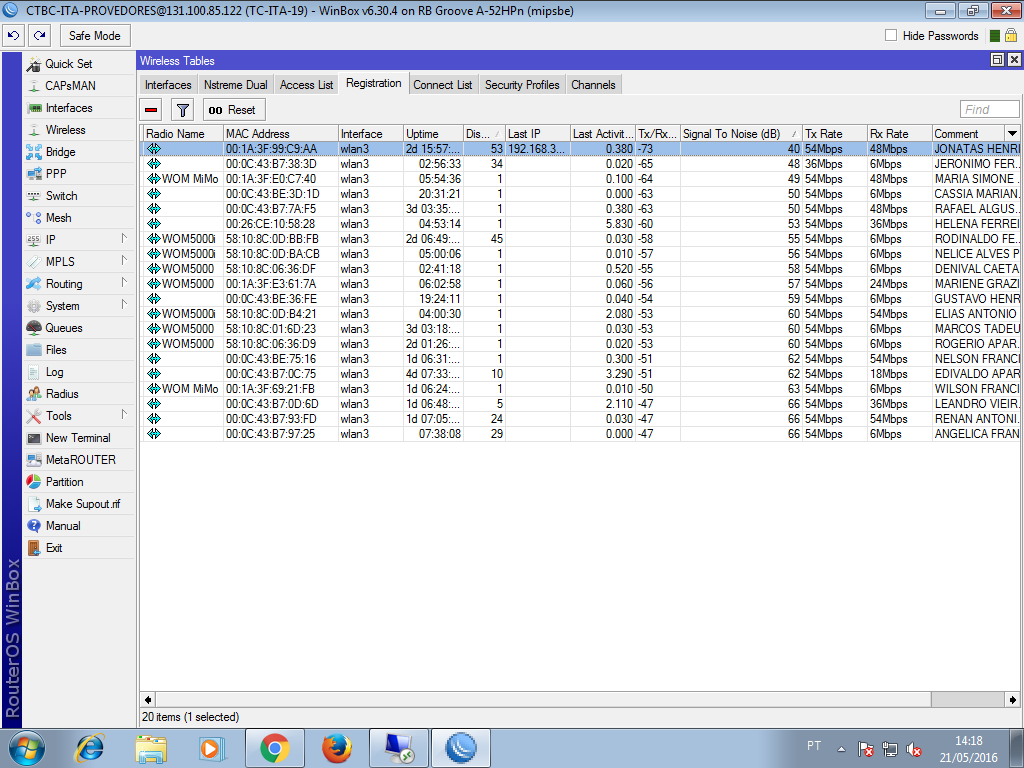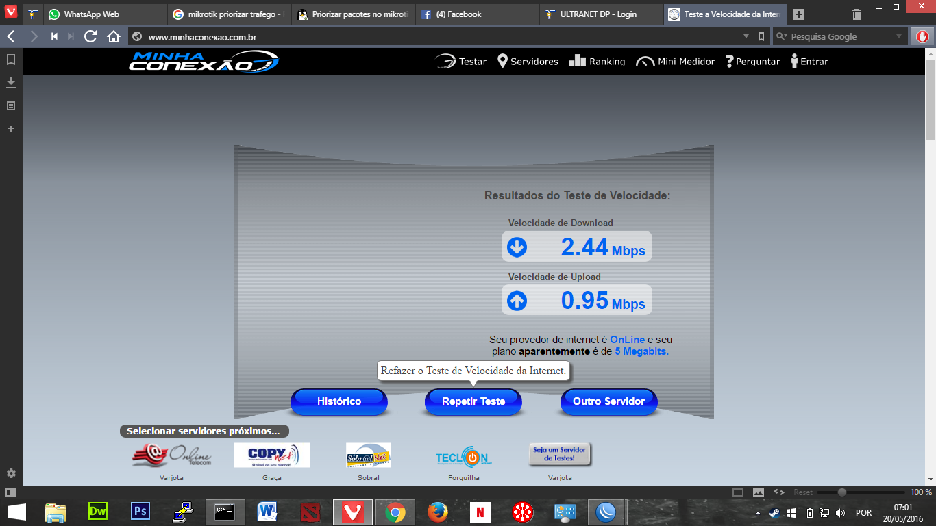Que por sinal na imagem acima tem 20 conectados. 54/20 = 2 megas e um bucado no.