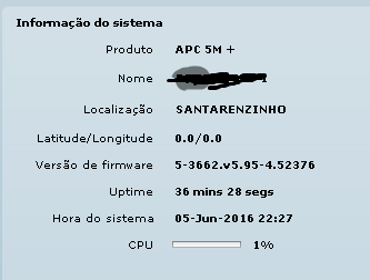 Porém possuo um problema semelhante ao do NielsonPadilha. Os rádios reiniciam de tempos em tempos, utilizo a última versão de firmware nos equipamentos. Os monitoro via SNMP. Não existe um padrão, mas de tempos em tempos eles reiniciam, isso acontece com todos os APC-5M. Acredito que pode haver uma falha no firmware.