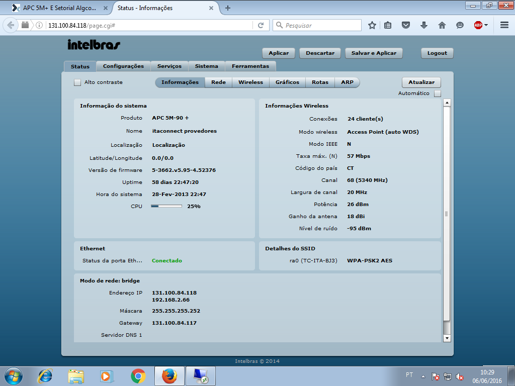 Nesse momento o apc 5m+ não está mais respondendo ping, nem abrindo a página.