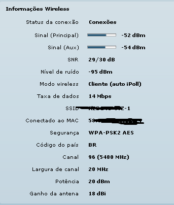 Obs: Esse radio no cliente não foi feito alinhamento fino, como ele estava conectado na outra torre que fica praticamente na mesma direção, só conectamos para ver o sinal como ficava.