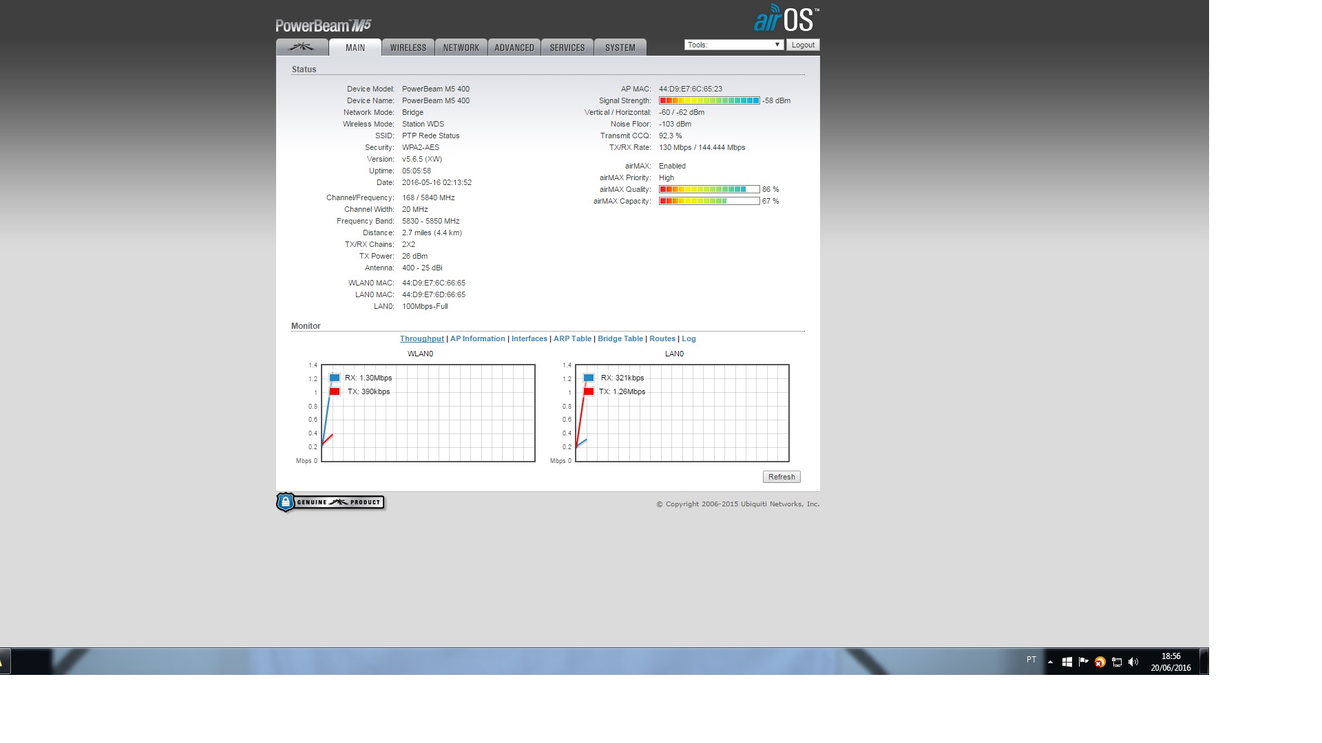 Tenho um ponto a ponto com 2 powerbean 400 que funcionava muito bem e com visada 100%, a uma semana e meia venho sofrendo com oscilação no sinal, achei que era aquele virus e fiz o procedimento atraves do putty para remoção. Apos o procedimento o sinal deu uma melhorada mas so consigo enviar para o POP dos clientes 10 mega ja o POP devolve 35 mega. Alguem ja passou por isso?