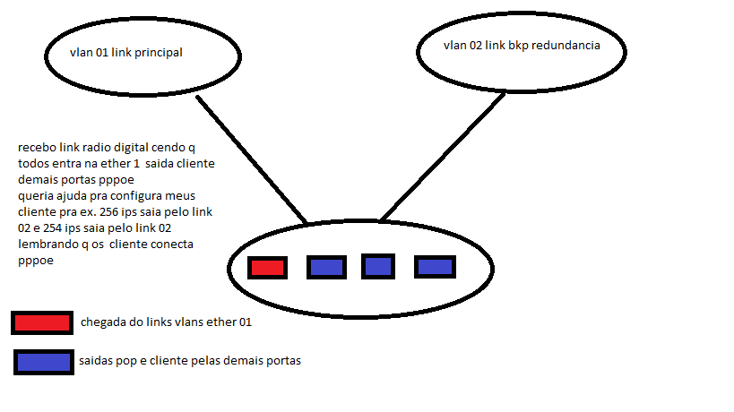 fala galera tenho 200 mg de link dedicado e recebo eles no mesmo radio com vlans destintas todas entra na porta ether 01 e sai pros meus cliente nas determinadas portas meus cliente sao todos pppoe queria fazer os dois links rodarem simultaneos..foto em anexo de como esta