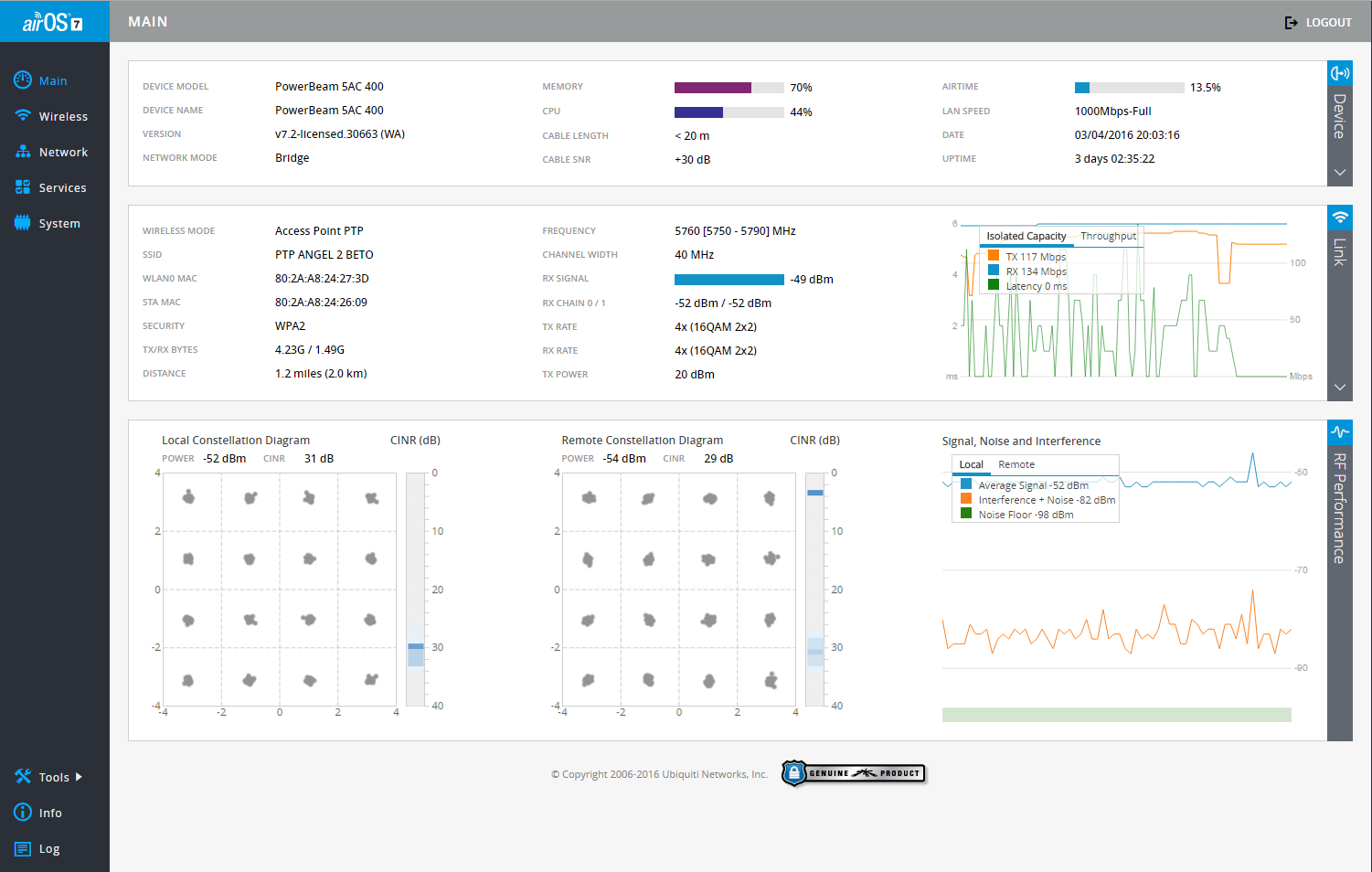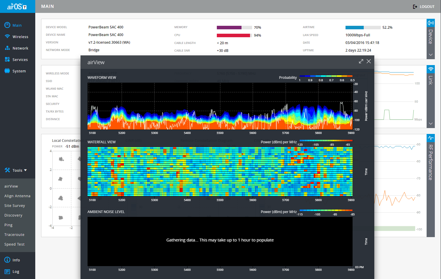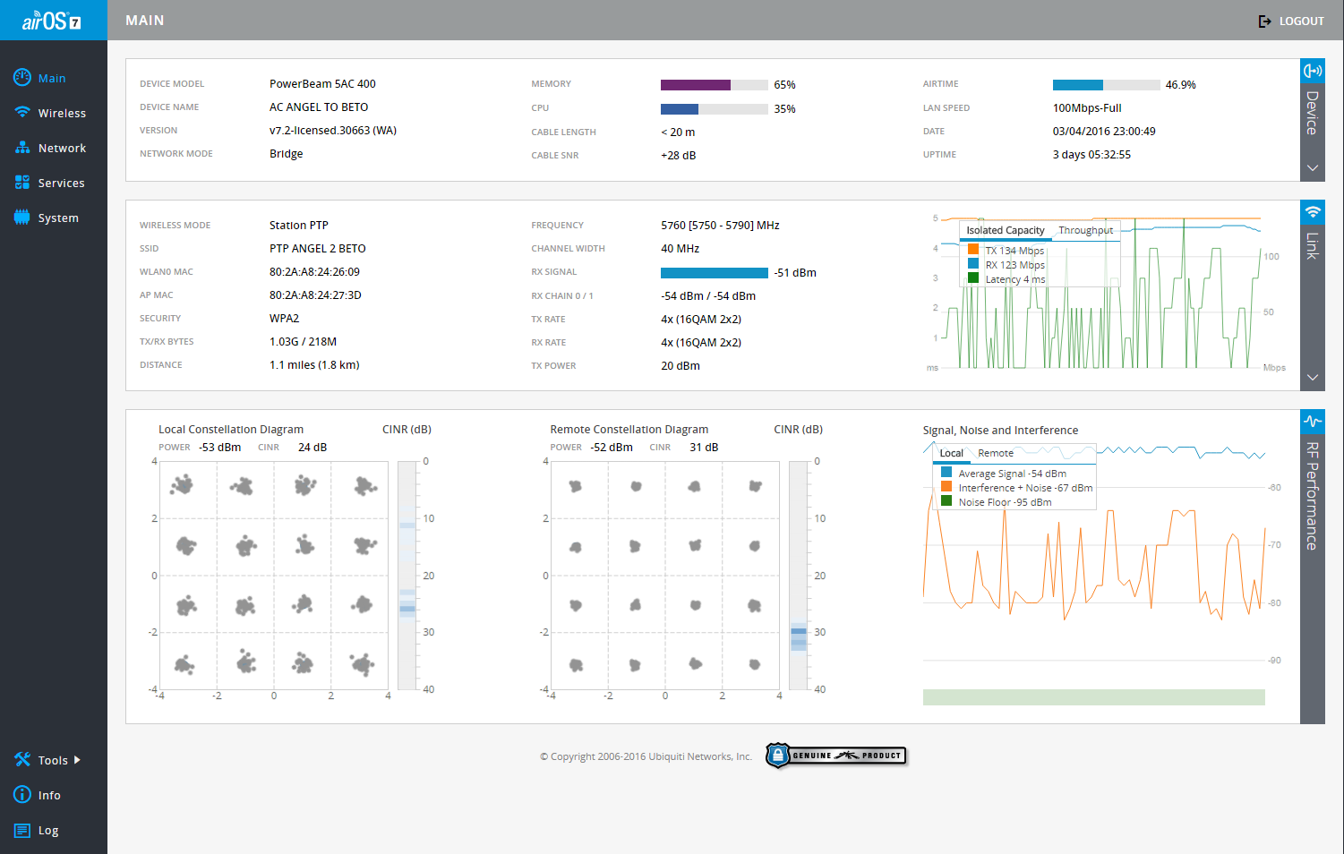Esse CINR de 24dB é pouco, ele deve ser tratado igual SNR, precisa ficar acima de 32dB.