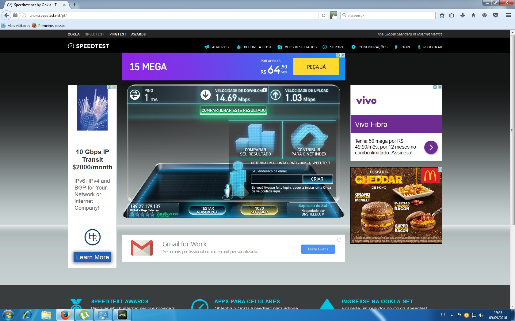 Agora ele quer passar 15mb / 1mb nesse enlace, onde creio que seja adsl velox, sendo uma boa prática avisarmos a ele que não há garantia de banda nessa modalidade, para que depois não venha reclamar dos equipamentos instalados quando na verdade o problema possa ser de fato o link, que nunca entregam o que é contratado.