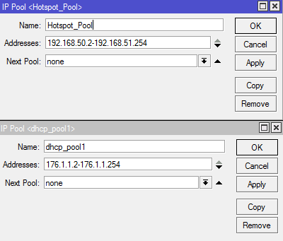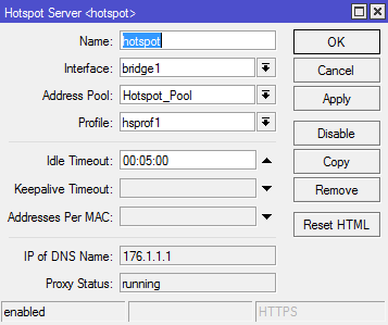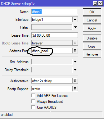 criei um servidor DHCP.. logo depois criei o Hotspot pelo Hotspot Setup..