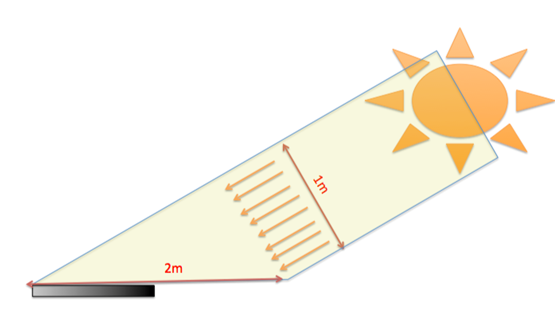 O que ocorre é que com o sol fora do angulo ideal, a radiação que existiria em 1m² passa a cubrir digamos 2m² de painel, é a mesma quantidade de radiação mas no dobro do painel, equivale a ter só "meio sol":