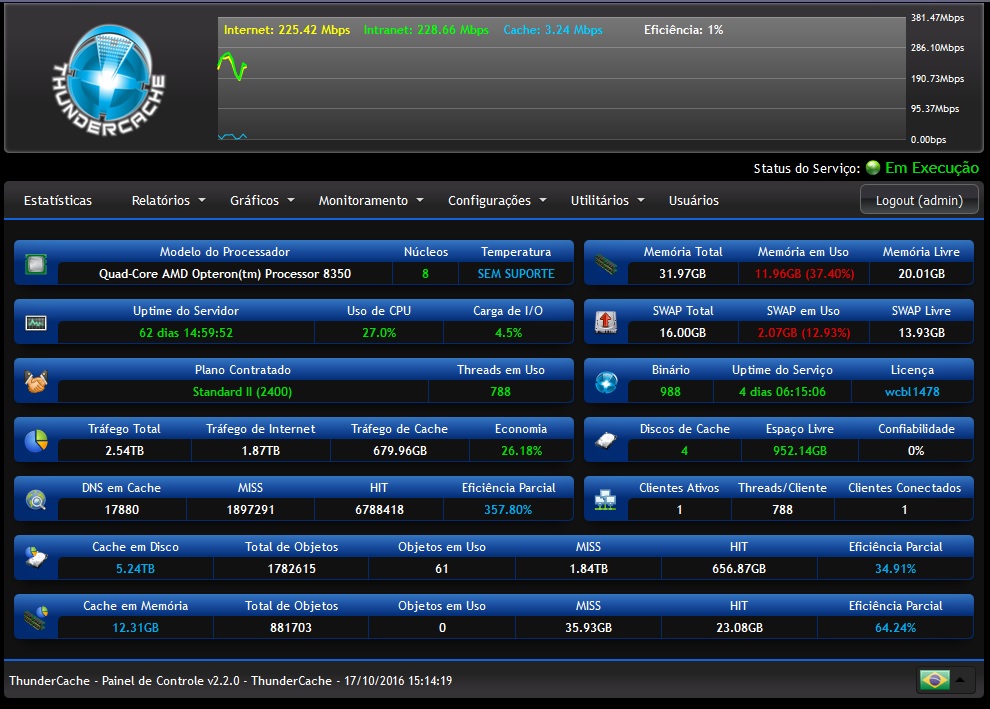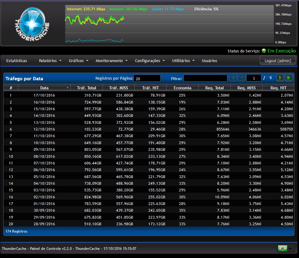 não brinca que vc esta se baseando pelo print tirado apenas naquele momento ??? se for não use cache nunca, se não consegue fazer uma leitura correta com tudo que postei quem dirá usar e configurar, esses valores oscilam sem parar, as vezes pela manha tenho consumo de cache na casa dos 100mb (por conta de atualizaçoes de windows e antivirus) e nem por isso vou me basear pelo pico (mesmo porque seria fácil liberar um download aqui e tirar um print pra mostrar uma economia maquiada) por isso coloquei imagens de todos os parametros. Não estou aqui pra condenar nem incentivar o uso do cache, postei dados reais para melhor avaliação do amigo criador do tópico, agora é com ele .... Os relatórios estão ai se verificar no dia 04/10/2016 tive 249.13GB de saida pelo cache, pra mim pelo menos ainda é satisfatório ....