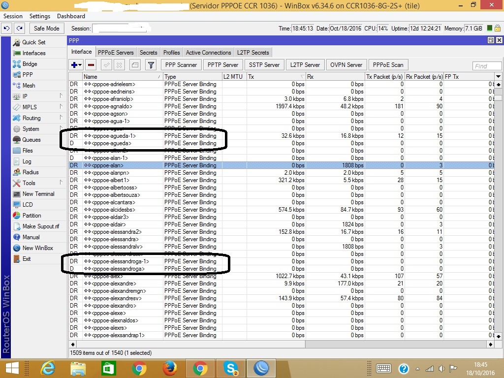 melhor, já aconteceu isso comigo, veja no profile do pppoe e controle de banda, reveja essas configurações e se não existe algo em duplicidade