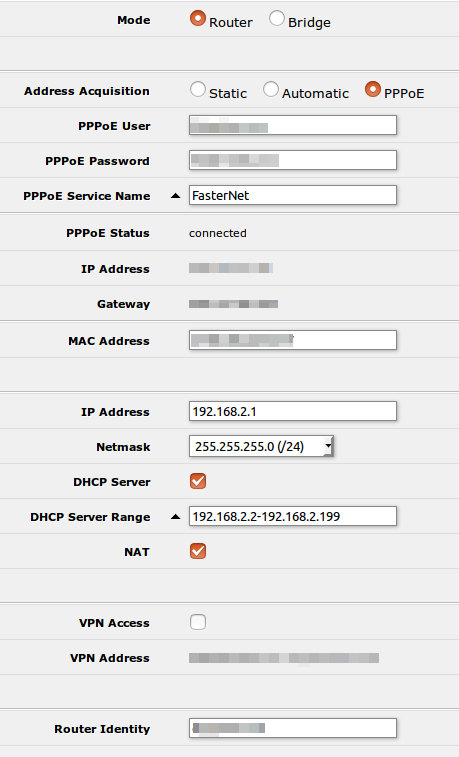 Pessoal tenho um link FasterNet e um Vivo aqui ligados ao pfSense que está configurado como failover, preciso configurar o MikroTik (FasterNet) em modo bridge.