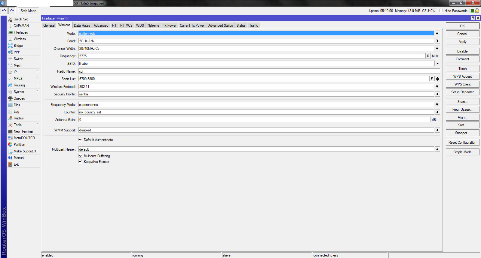 estou com uma omnitik, e por algum motivo o ccq fica ruim, coloquei em um canal limpo (5775), aumentei a largura do canal para 20/40mhz above, porem noto que as vezes o radio cai e fica oscilando mt o ccq... e tambem os mcs ficam modulando muito... existe algo que possa fazer?
