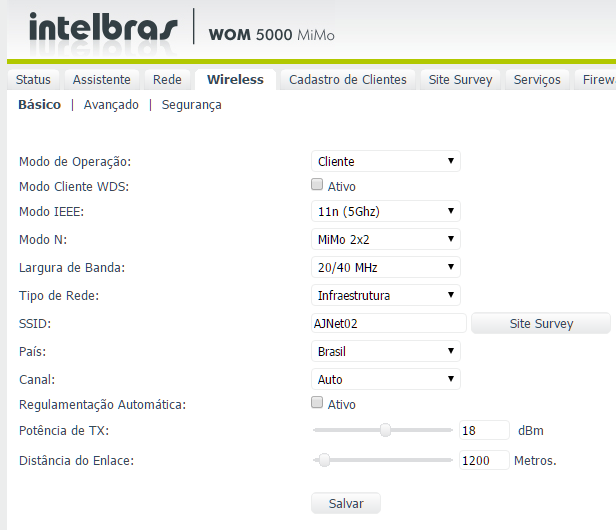 » Melhoria no modo AP, onde quando modulação está fixa, todos os equipamentos SISOs aparecem na interface com a modulação de MIMO;