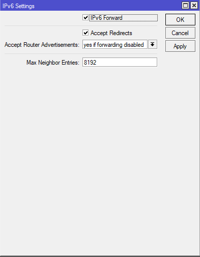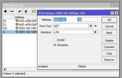 Habilitei o EUI64, já estava selecionado a interface da LAN mas nada feito.