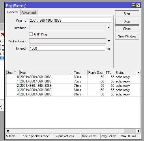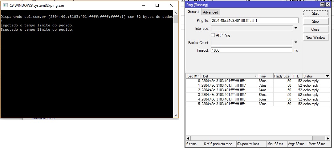 Mas eu consigo 'pingar' qualquer ipv6 externo pelo Mikrotik, até mostrei aí no post acima do seu tudo funcionando com o UOL. Então tem internet, certo?