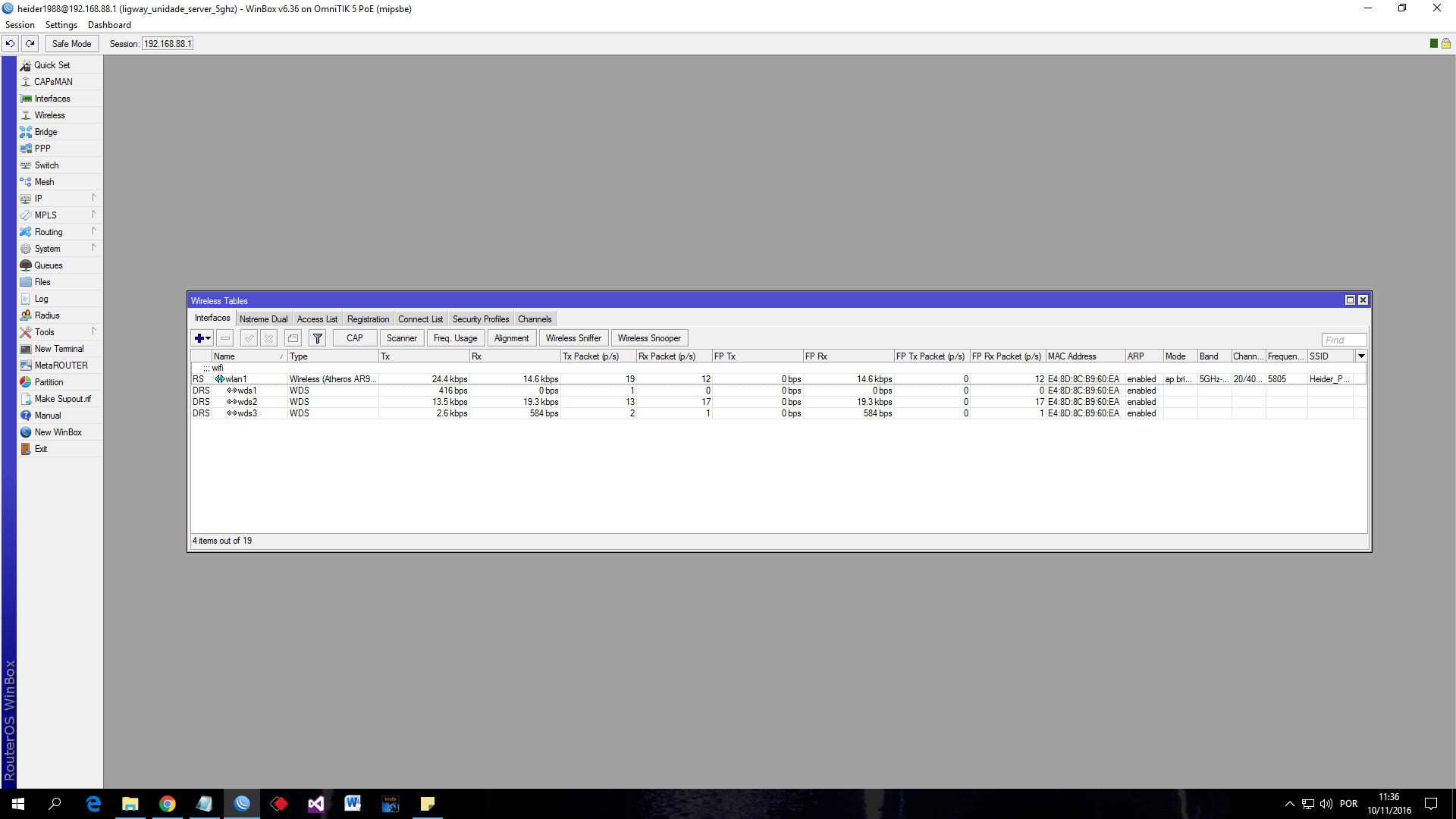 Obs: A antena de 5Ghz está funcionando, somente a 2Ghz que não, quando eu abro o winbox, apenas o ip da antena 5Ghz é localizada, a antena 2Ghz não aparece no winbox, alguém já passou por essa experiência?