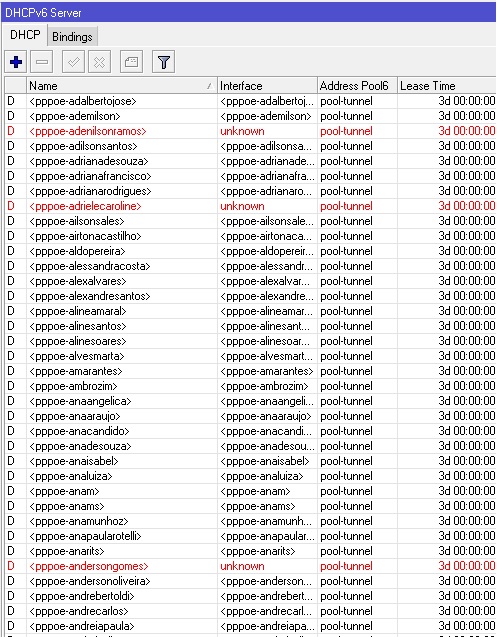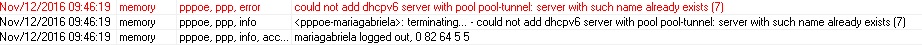 Eea galera, então estou com um pequeno problema no DHCPv6 está dando erro e geralmente quando começa dar esse erro, o cliente não se conecta no pppoe, enquanto eu não derrubar do dhcpv6 segue em anexo as imagens dos erro e da aba Dhcpv6,