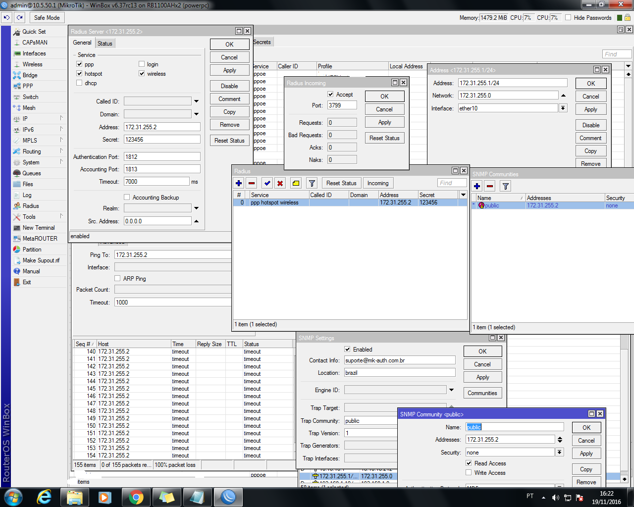 galera to tentando implanta o mk-auth no meu mik... mas nao consigo ping para o mk-auth alguem poderia dizer onde estou errando por que ja tentei refazer tudo mas nao vai e tambem nao consigo acessar o webadmin