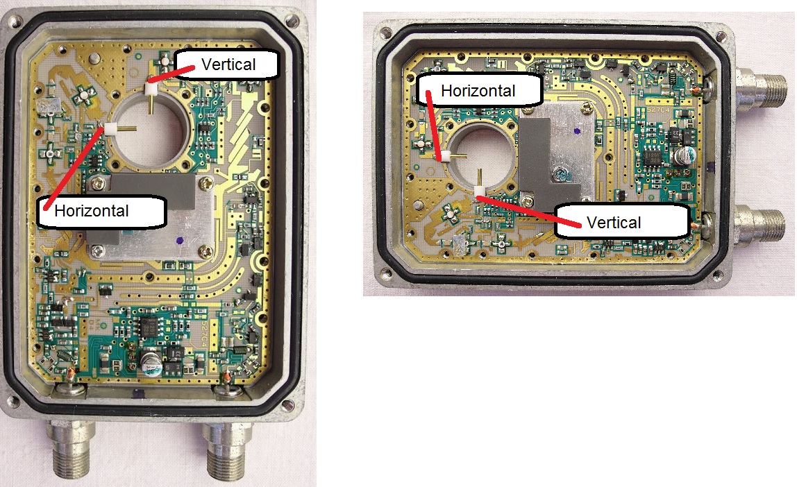 Se pegar LNB de antena parabólica banda C, KU ou KA verá os mesmos monopolos, aqui um banda KU (Uns 10-12GHz):