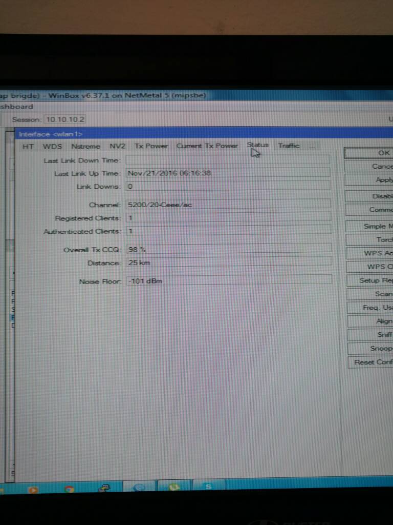 Nunca trabalhei com Rocket AC então não sei te dizer, mas primeiramente recomendaria você verificar canal e alinhamento, tenho cenários parecidos e até com distâncias maiores com sinal melhor que esse seu. Como está seu CCQ? Qual antena você utiliza?
