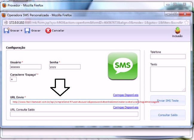 Uma sugestão é você usar a integração nativa do MK Solutions com a Facilita SMS