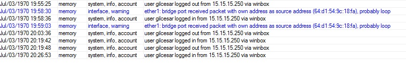 OLA pessoal tenhom uma rb em bridge em uma torre minha e hj verificando seu log , me apareceu esta mensagem:ether1-entrada de link bridge port received packet with own address as source address probably loop, como saber da onde vem esse loop e como resolver