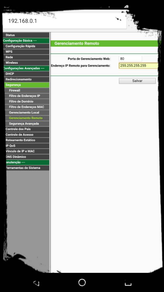 Eno roteador vc só abilita o gerenciamento remoto , coloca aporta que vc vai usar ex: 8080 aí coloca o IP 255.255.255.255.