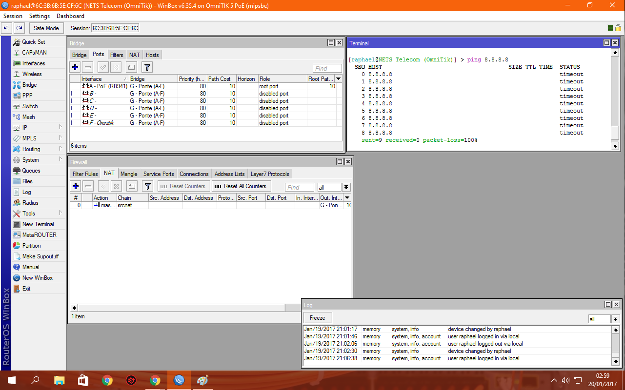 Porque tem NAT na omnitik? A rb941 está funcionando normal o PPPoE server ? Porque para a omnitik navegar só vai depender da rb941 está configurada corretamente, e configurar gateway dns.