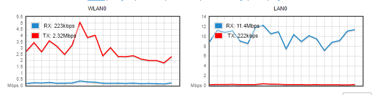 Mas aqui, com alguns rádios (não são todos), acontece uma diferença muito grande. As vezes na WAN está trafegando 2 Mb e na LAN está trafegando 8 Mb. Sempre a porta LAN tem um trafego maior do que a WAN.