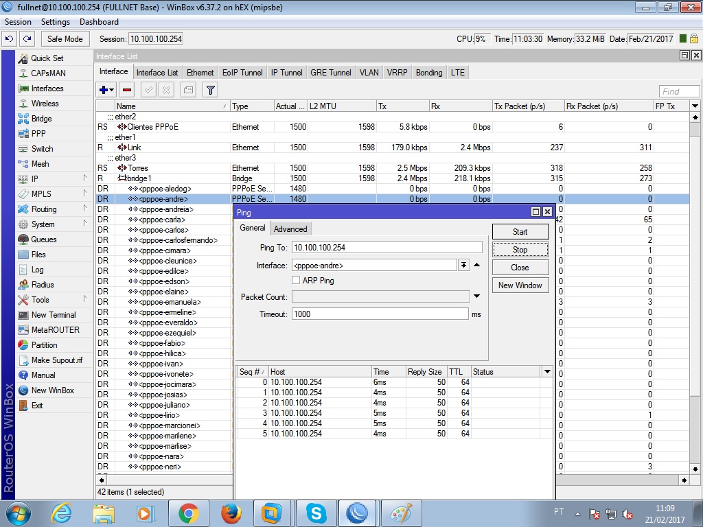 bt, pessoal, ontem instalei uma powerbeam m5 300 o sinal perfeito, liguei ela em bridge, e de la vai para um switch vlan intelbras, e depois autenticação pppoe nos roteadores dos clientes, dai surge um problema nessa antena tenho 2 clientes ligados, quando desligo 1 o outro funciona e vice versa...... detalhe que tenho um condominio ligado tudo com sxt assim em bridge e ta funcionando perfeito, nesse bloco em especifico coloquei para uma outra torre com rocket m5, e esses dois clientes deslogam alguem pode da uma dica