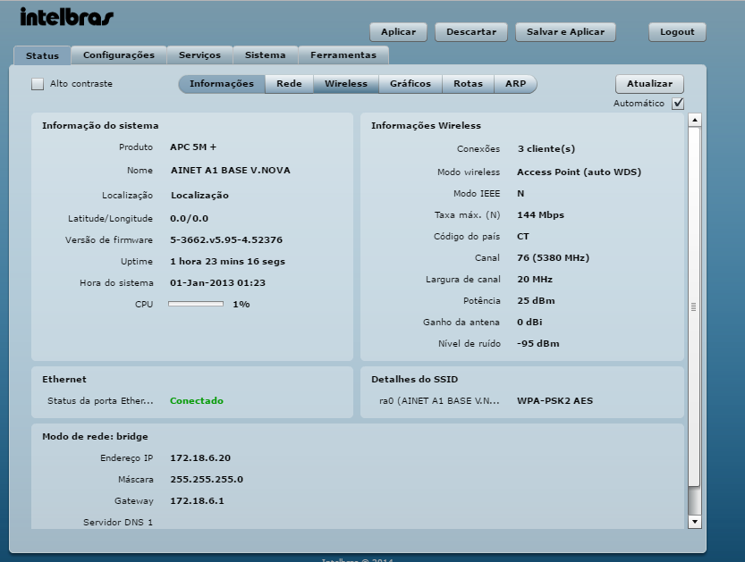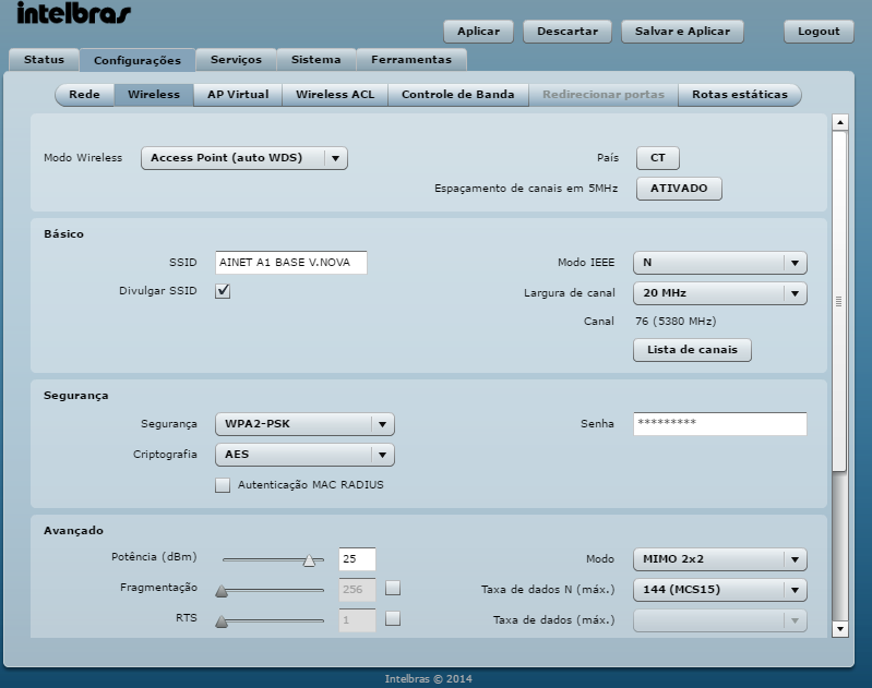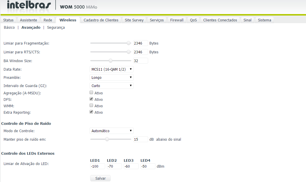 -Outros dois detalhes importantes sobre a configuração de Wireless >> Avançado dos clientes é fazer um teste com Intervalo de Guarda (GI) Longo e aumentar o piso de ruído para 20dB ou 25dB abaixo do sinal.
