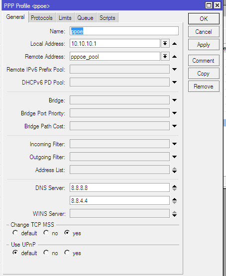 Outro detalhe é que você está setando o mru o interessante é você deixa o MTU e mru dinâmico para se adaptar a sua Rede