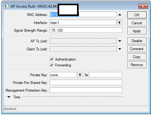 Certo no mikrotik você irá manipular o access list do wirelless.