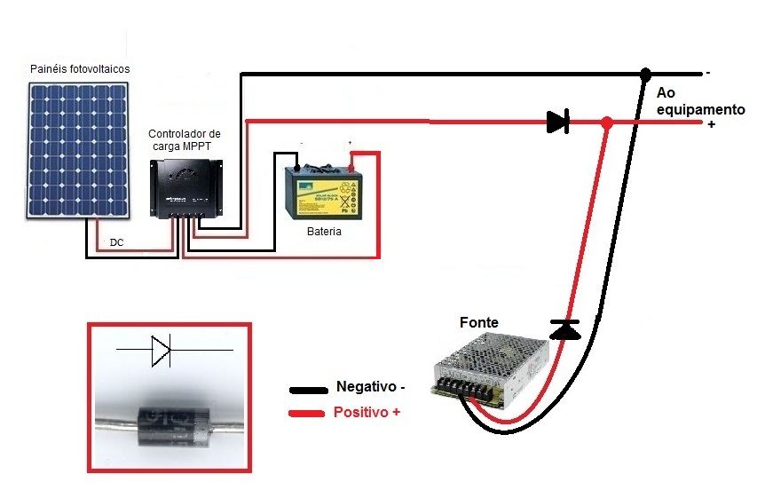 (Quando não dá pra usar esses diodos de 6A: https://www.macrovirtual.com.br/comp...n-5406-chipsce , eu passo logo pra ponte retificadora de 25A: https://www.macrovirtual.com.br/comp...c-2510-chipsce , ainda não precisei de mais que 2 ou 3A nesses circuito, até um diodo de 10A serviria mas as vezes os mais potentes são até mais baratos, tem que ver o que tem de componentes perto de cada um, pra mim a Macro é mais perto (1 semana via sedex dos altamente eficientes Correios))