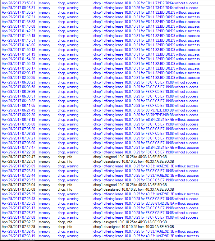 apr/27 19:22:49 dhcp,info dhcp1 deassigned 10.0.10.22 from 5C:51:88:27:AF:B5