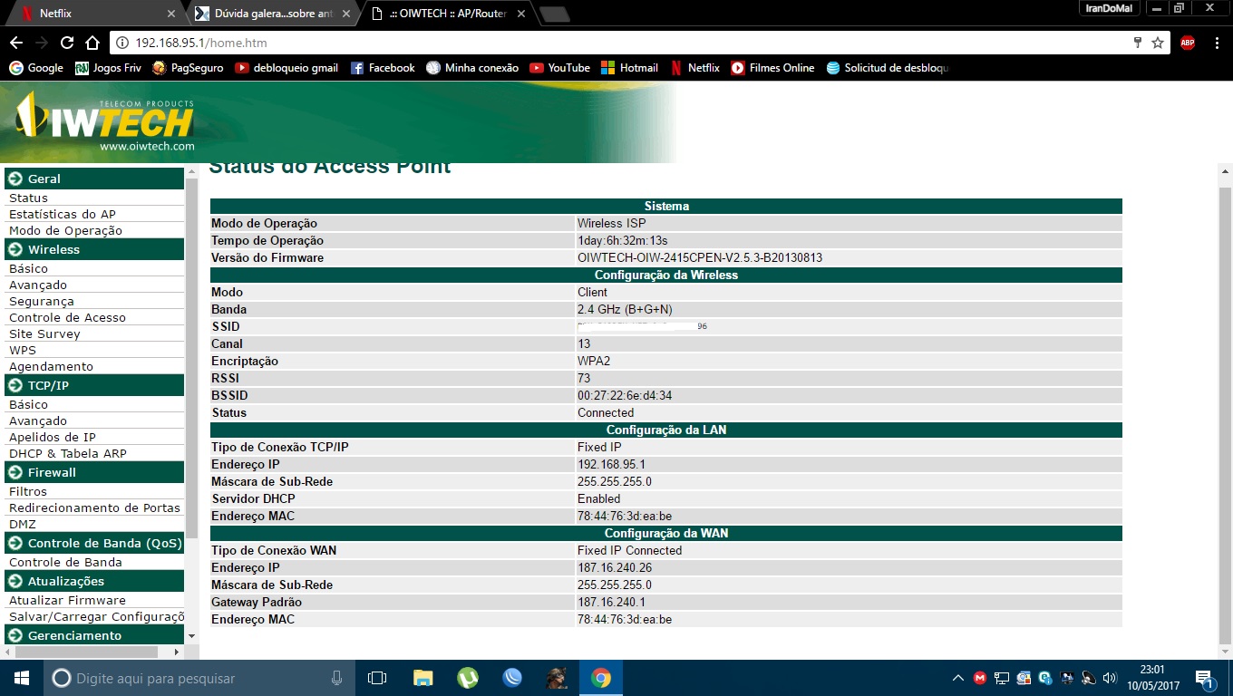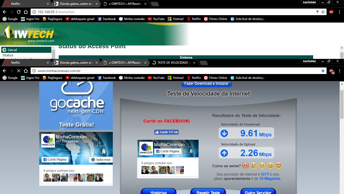 Ele está usando BGN e se gabando de passar 2 mb de upload e 10 de download.