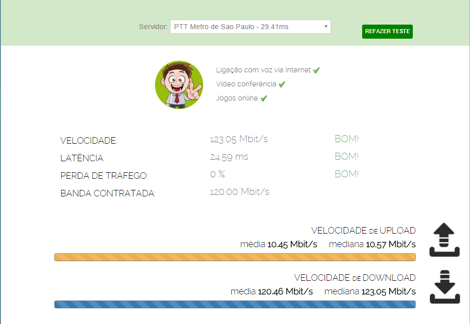 Segundo que não existe essa de garantia de 10%! A garantia é de 40% de velocidade instantânea e velocidade média de 80%.