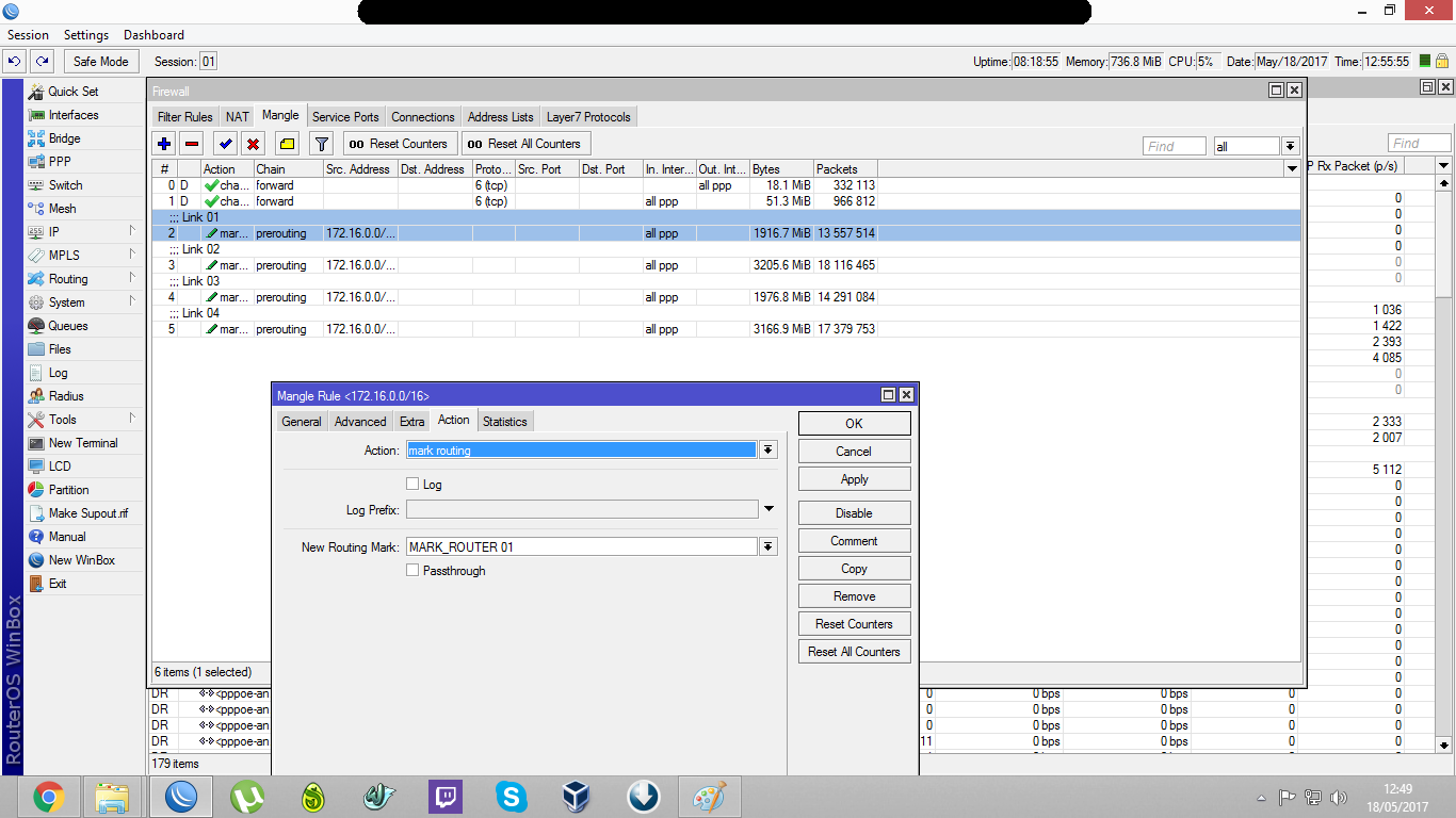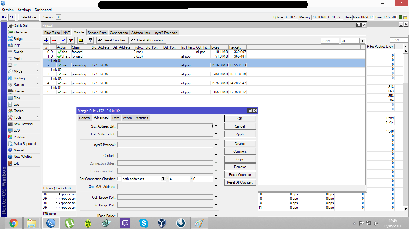 Eu somente marco as conexões oriundas dos clientes (com o respectivo PCC) e depois marco as rotas baseadas nas conexões marcadas, tenho Load Balance assim rodando mais de 2 anos sem problemas (detalhe, uso both-address).