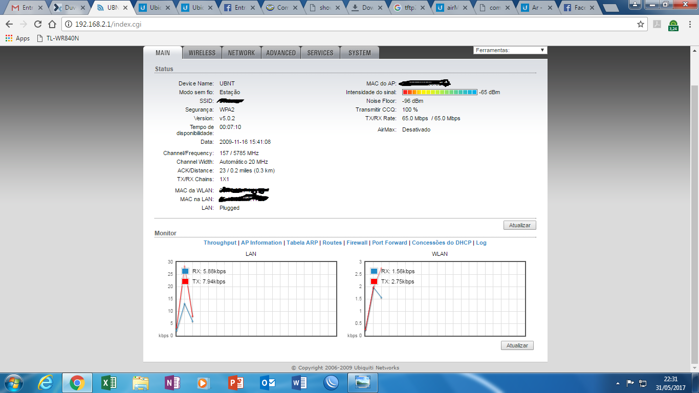 Olá pessoal!!! Já que estamos no assunto do Bullet M5, tenho dois ptp com Bullet M5 e desde ontem eles param de se conectar. o Acess Point estava tudo ok, e fui até o Station, portanto também estava tudo ok as configurações, porém não conectava um ao outro. Troquei as frequencias, coloquei em 20,30 mhz, e nada. Coincidência ou não, os dois ptps são com Bullet M5 e apresentam o mesmo problemas, as antenas tudo normal, mas não conectam uma na outra. Aguem está com esse mesmo problema???