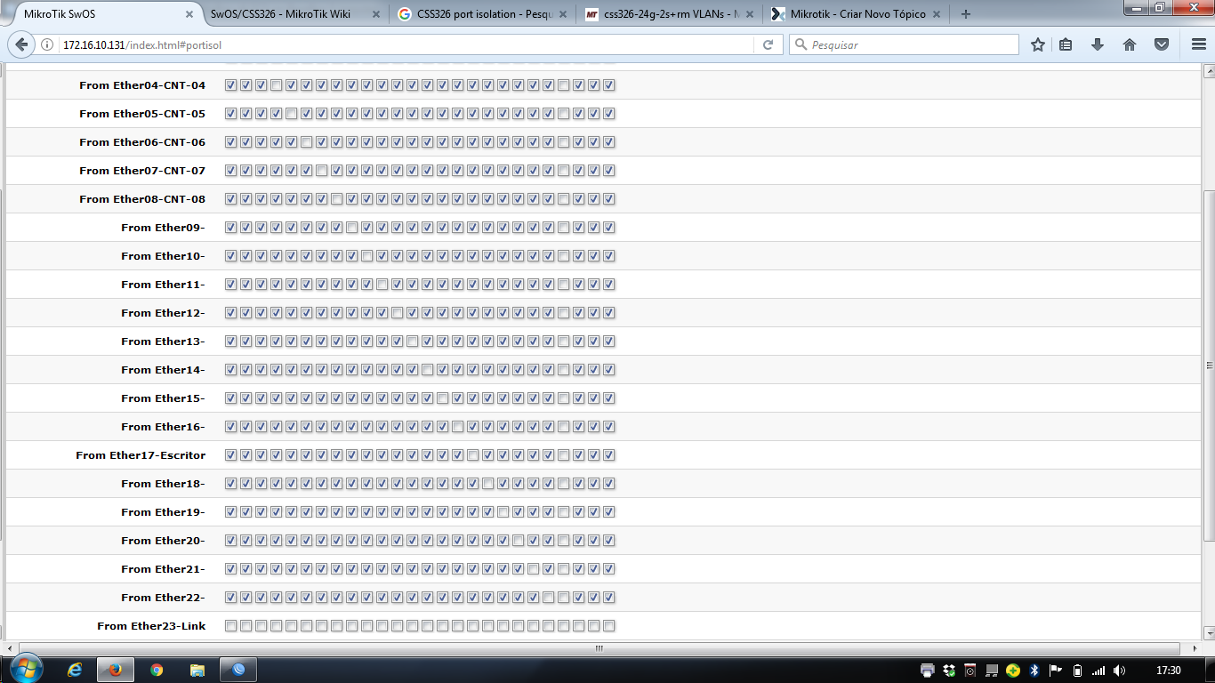 Alguém aí já está trabalhando com a CSS326, o novo switch da Mikrotik? Ele utiliza o SwOS e possui o recurso de Port Isolation. Fazendo uns testes em bancada não obtive sucesso em configurá-lo. Alguém que utilize switchs com SwOS e possa me dar uma luz?