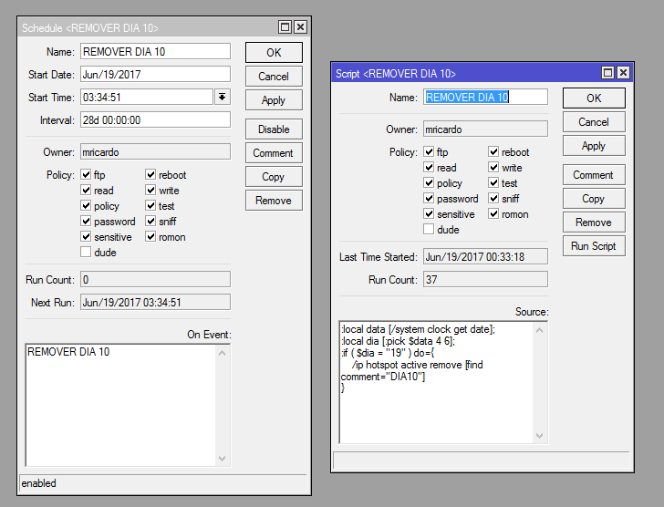 OBS: se eu clicar manualmente em 'run script' funciona perfeitamente.