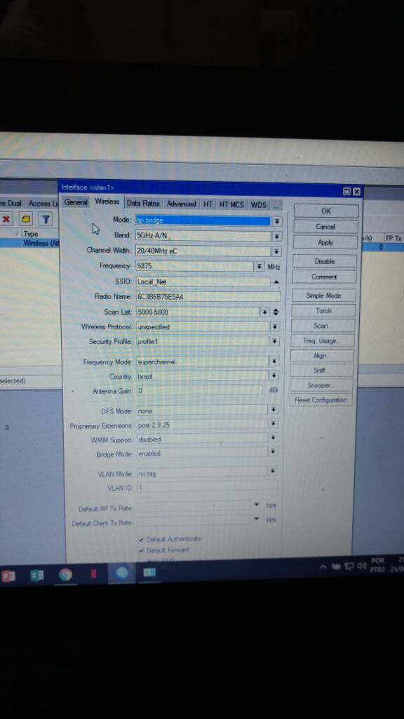 Vai em anexo as fotos da configurações da interface sem fio.