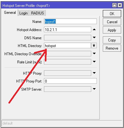 ip/ hostpot/server profile/ html directory seleciona hostpot. desde que seja este o nome da pasta que vc colocou la. se der certo de joinha a e ok. to precisando :)