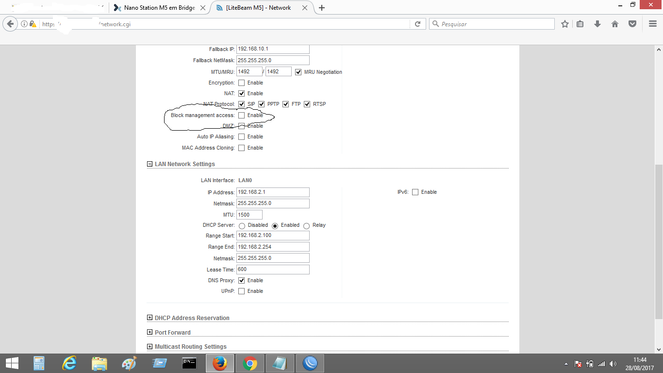 Marquei o NAT, e não funcionou, atualizei o Firmware do Radio e ele funcionou 100%